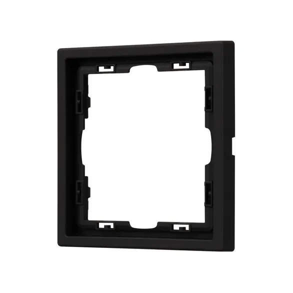 Рамка пластиковая на 1 пост, под встраиваемый механизм. Цвет - черный, с Soft-Touch покрытием. Среднего уровня герметичности IP20. Ориентация монтажа горизонтальная.