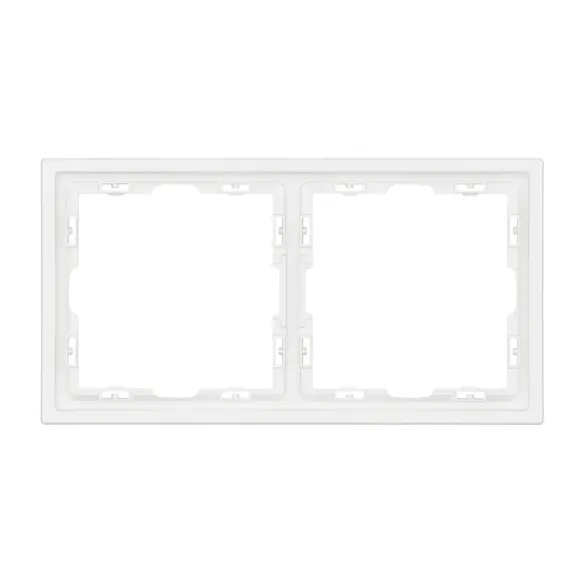 Рамка пластиковая на 2 поста, под встраиваемый механизм. Цвет - белый, с Soft-Touch покрытием. Среднего уровня герметичности IP20. Ориентация монтажа горизонтальная.
