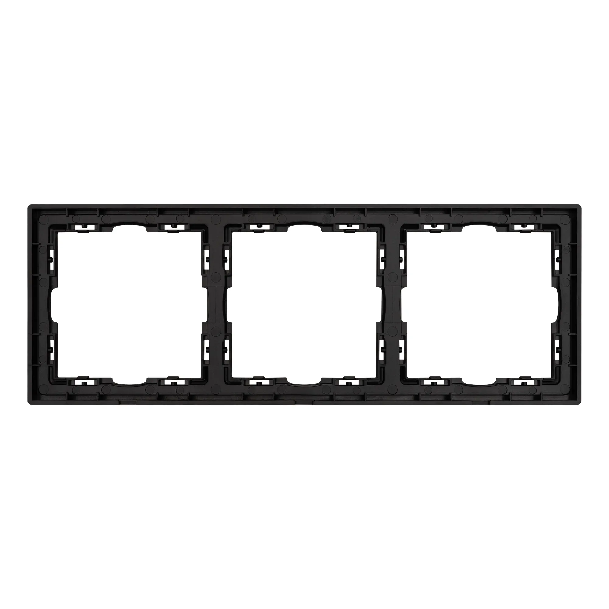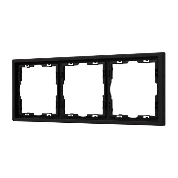 Рамка пластиковая на 3 поста, под встраиваемый механизм. Цвет - черный, с Soft-Touch покрытием. Среднего уровня герметичности IP20. Ориентация монтажа горизонтальная.