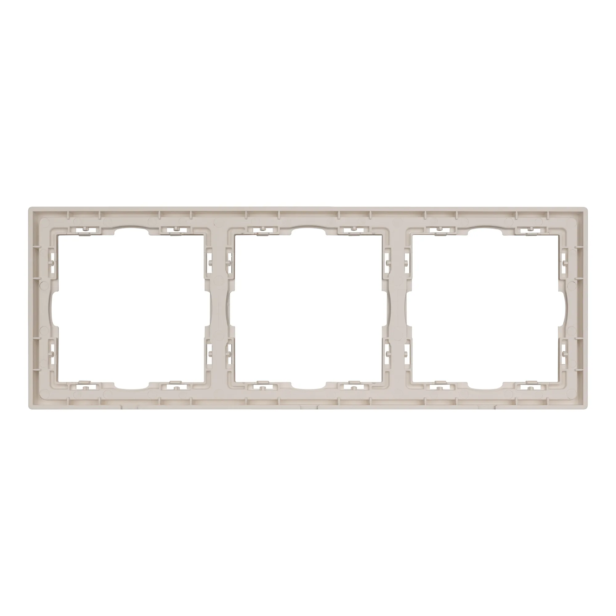 Рамка пластиковая на 3 поста, под встраиваемый механизм. Цвет - кашемир, с Soft-Touch поверхностью. Среднего уровня герметичности IP20. Ориентация монтажа горизонтальная.