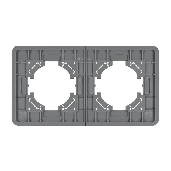 Рамка стеклянная на 2 поста, под встраиваемый механизм. Цвет - серый. Среднего уровня герметичности IP20. Ориентация монтажа - горизонтальная (основным ориентиром служат посадочные выступы для накладки механизма).