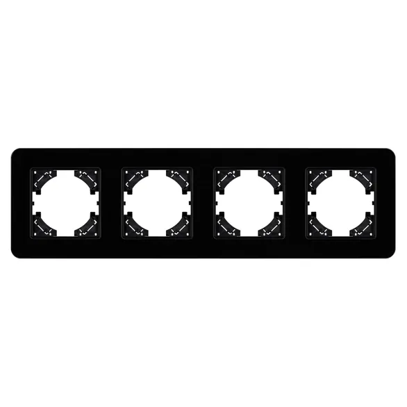Рамка стеклянная на 4 поста, под встраиваемый механизм. Цвет - черный. Среднего уровня герметичности IP20. Ориентация монтажа - горизонтальная (основным ориентиром служат посадочные выступы для накладки механизма).