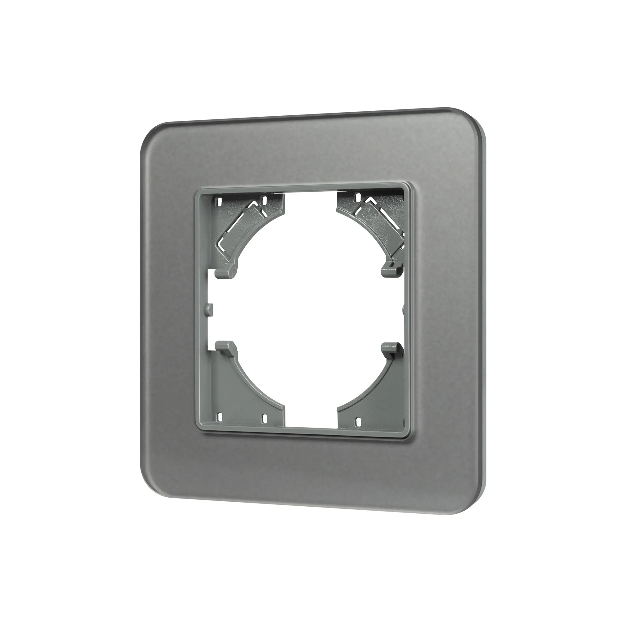 Рамка стеклянная на 1 пост, под встраиваемый механизм. Цвет - серый с Soft-Touch покрытием. Среднего уровня герметичности IP20. Ориентация монтажа - горизонтальная (основным ориентиром служат посадочные выступы для накладки механизма).