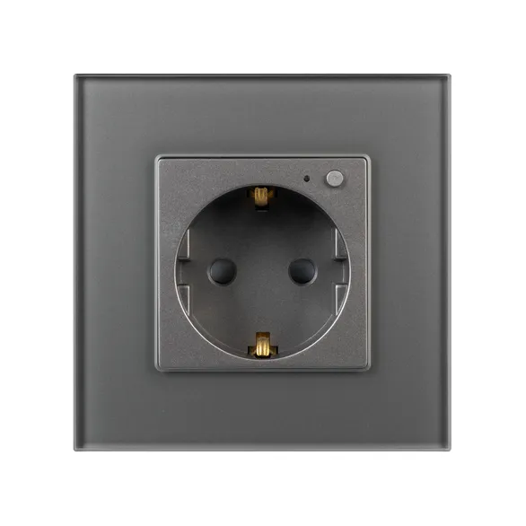 Умная розетка из серии OMALI с функцией беспроводного управления по протоколу Zigbee. Видимая часть механизма выполнена из высококачественного пластика серого цвета, с фронтальной рамкой из закалённого стекла. Контактная часть присоединяется при помощи винтовых зажимов, а усиленная алюминиевая рамка, надежно фиксирует механизм в установочном подрозетнике.