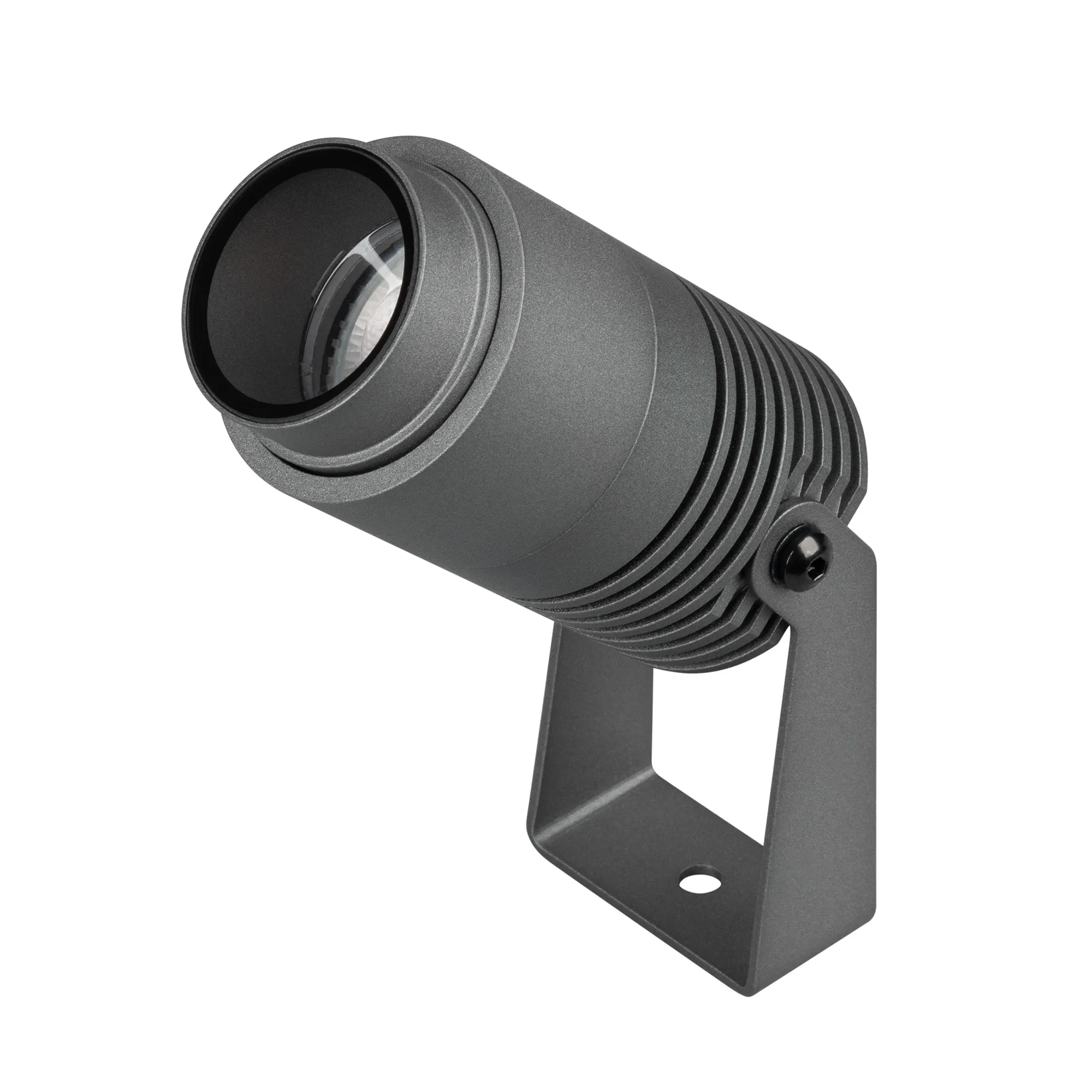 Уличный светодиодный прожектор, мощность 8Вт, регулируемый угол освещения 10-40°. Цвет ТЕПЛЫЙ 3000К, световой поток для угла 10° 240 для угла 40° 420лм. Влагозащищенный корпус IP67 - темно-серый алюминий, экран из закаленного стекла. Угол поворота корпуса в вертикальной плоскости 135°. Питание 230В, мощность 8 Вт. Размеры DxH - Ø52x103мм. В комплекте 1м провод.