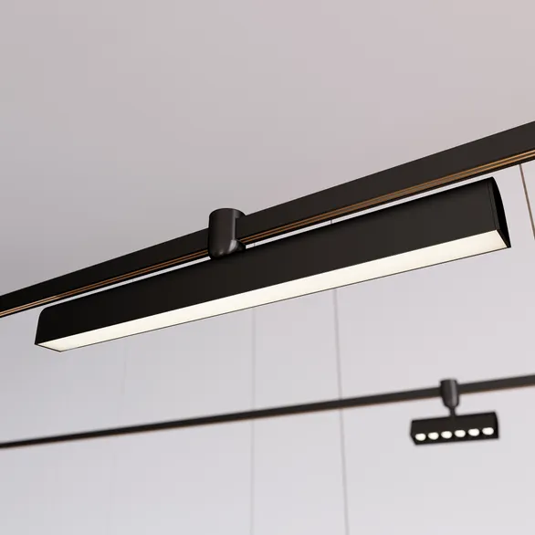 Светильник APRIORI-FLAT мощностью 15 Вт для треков APRIORI шириной 17 мм. Теплый цвет свечения, световой поток 600 лм, световая эффективность 40 лм/Вт и высокий индекс цветопередачи обеспечивают качественное освещение. Линейный корпус из алюминия, окрашенный в черный цвет гармонично вписывается в различные типы интерьеров. Светильник легко монтируется на шинопровод с помощью специального механизма. Есть возможность вертикальной установки светильника. Угол излучения 120 градусов подойдет для организации общего освещения, а матовый экран создает рассеянное свечение. Имеет защиту от пыли IP20 для применения внутри помещений, где нет контакта с водой или другими жидкостями. Минимальный коэффициент пульсации гарантирует зрительный комфорт без мерцания. Управление яркостью осуществляется с помощью диммера по ШИМ (PWM) или возможно не адресное управление при использовании драйвера Dali, 0-10V или TRIAC. Драйвер для подключения 48В поставляется отдельно.