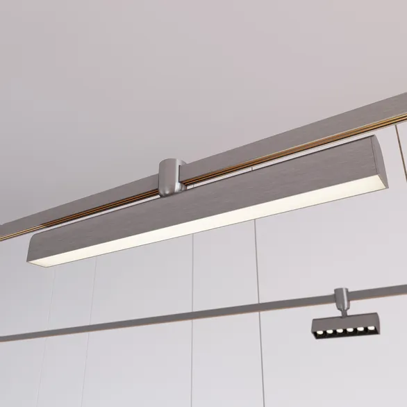 Светильник для треков APRIORI шириной 17 мм. Мощность 15 Вт, св. поток 600 лм, 40 лм/Вт, теплый 3000 K, CRI>90, угол 120°, напряжение питания 48 В. Линейный корпус из алюминия, гальванизированного в цвет титан, экран поликарбонат, степень защиты IP20. Размер: длина 500 мм, ширина 38 мм, высота 95 мм (вместе с корпусом крепления). Диаметр крепления 38 мм. Монтаж на трек APRIORI 17 мм. Пульсация <1%. Возможно диммирование по ШИМ (PWM) или не адресное управление при использовании диммируемого драйвера Dali, 0-10V, TRIAC.