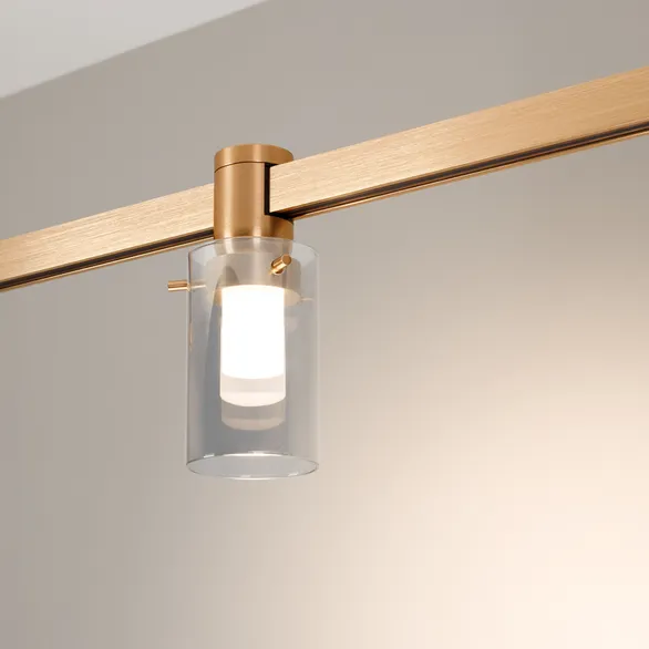Светильник для треков APRIORI шириной 17 мм. Мощность 5 Вт, св. поток 240 лм, 48 лм/Вт, теплый 3000 K, CRI>90, угол 120°, напряжение питания 48 В. Круглый корпус из алюминия, гальванизированного в цвет светлое золото, экран стекло, степень защиты IP20. Размер: диаметр 60 мм, высота 147 мм. Монтаж на трек APRIORI 17 мм. Пульсация <1%. Возможно диммирование по ШИМ (PWM) или не адресное управление при использовании диммируемого драйвера Dali, 0-10V, TRIAC.