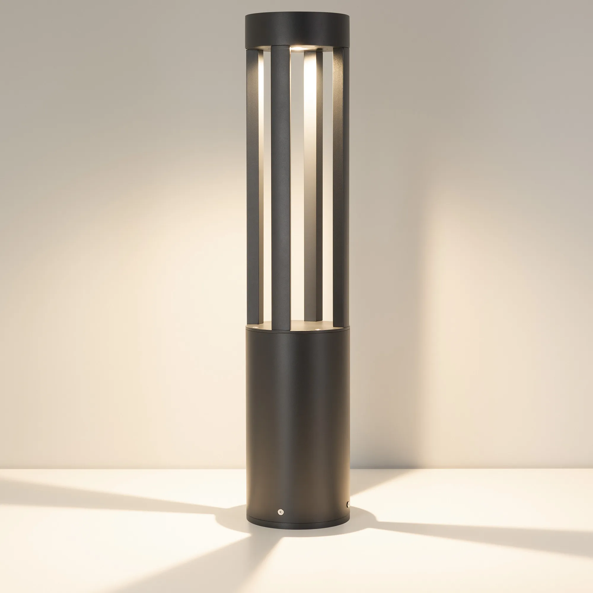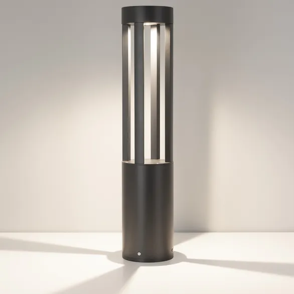 Уличный светодиодный светильник для подсветки дорожек с изменяемой цветовой температурой. Мощность 20 Вт, св. поток 1200-1400 лм, 60-70 лм/Вт, теплый 3000 K, теплый 3500 K, дневной 4000K, CRI>80, угол 80°, напряжение питания 230 В. Темно-серый круглый корпус из алюминия RAL 7016, экран из закаленного стекла, степень защиты IP65. Размер: диаметр 160 мм, высота 1000 мм. Монтаж накладной, комплект крепежа поставляется со светильником. Драйвер 27-40 В, 500 мА, пульсация <1%.