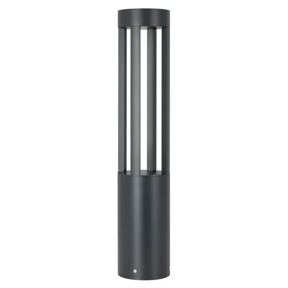 Уличный светодиодный светильник для подсветки дорожек с изменяемой цветовой температурой. Мощность 20 Вт, св. поток 1200-1400 лм, 60-70 лм/Вт, теплый 3000 K, теплый 3500 K, дневной 4000K, CRI>80, угол 80°, напряжение питания 230 В. Темно-серый круглый корпус из алюминия RAL7016, экран из закаленного стекла, степень защиты IP65. Размер: диаметр 160 мм, высота 800 мм. Монтаж накладной, комплект крепежа поставляется со светильником. Драйвер 27-40 В, 500 мА, пульсация <1%.