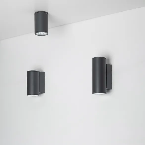 Накладной настенный светильник 12Вт, серый алюминиевый корпус, оптическое закаленное стекло. Цвет ТЕПЛЫЙ БЕЛЫЙ 3000K, св.поток 860лм, CRI(Ra)>80, угол 44°, свет вверх или вниз. Размер 133x90x182м. IP54. Питание AC230V, 12Вт, встроенный драйвер.