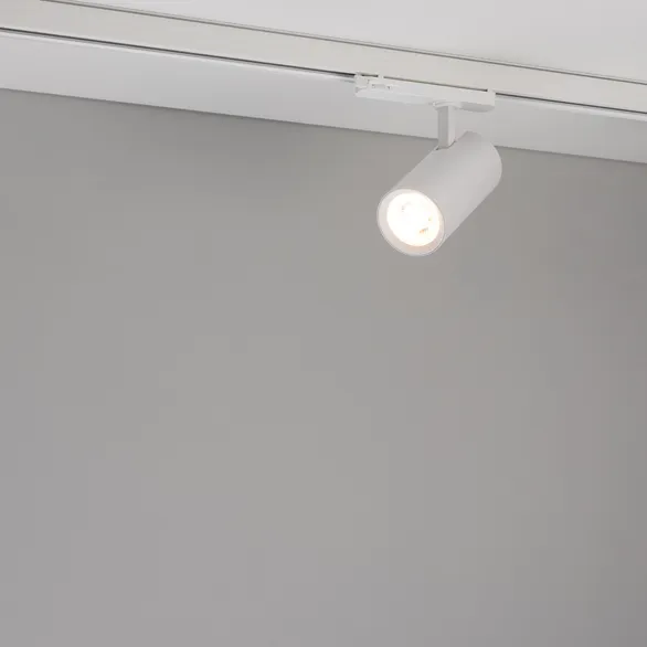 Светильник для треков/шин 4 провода. Мощность 20 Вт, св. поток без решетки honeycomb 2000 лм, 100 лм/Вт, с решеткой honeycomb 1320 лм, 66 лм/Вт, дневной 4000 K, CRI>90, угол 36°, напряжение питания 230 В. Белый круглый корпус из алюминия, материал линзы PMMA, степень защиты IP20. Антибликовая решетка honeycomb в комплекте. Размер: диаметр 74 мм, длина световой части 154 мм. Монтаж на трек 3-фазный. Драйвер встроенный 24-42 В, 500мА., пульсация <5%.