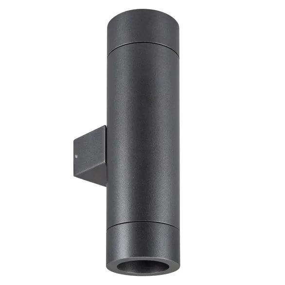 Накладной настенный светильник, свечение вверх/вниз. Мощность 24 Вт, св. поток 740 лм, 31 лм/Вт, теплый 3000 K, CRI>80, угол 2x6°, напряжение питания 230 В. Темно-серый фигурный корпус из алюминия, экран стекло, степень защиты IP65. Размер: длина 98 мм, ширина 65 мм, высота 220 мм. Монтаж накладной. Драйвер встроенный, пульсация <1%.