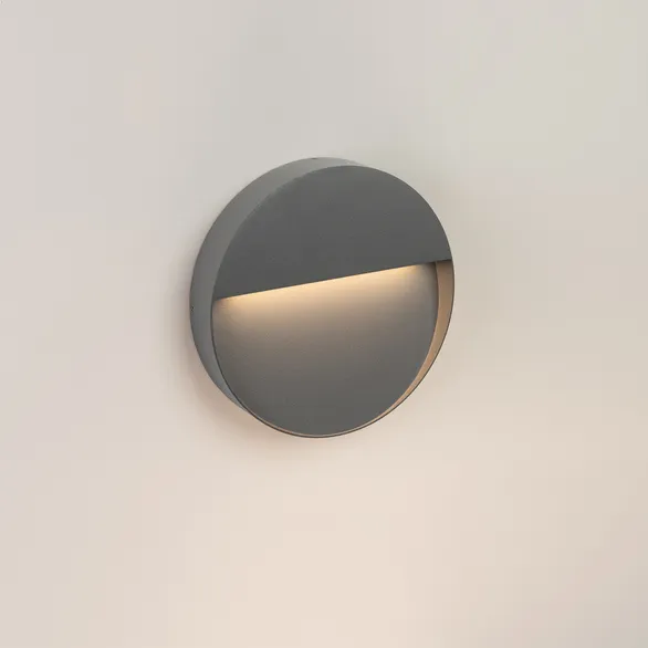 Накладной круглый светильник серии TRACE с асимметричным светораспределением и углом излучения 60°, отличительной особенностью которого является небольшая глубина корпуса и компактные размеры, незаменим в тех случаях, когда нет возможности встроить светильник в стену. Корпус изготовлен из алюминия, окрашенного порошковой краской серого цвета и имеет степень пылевлагозащиты IP65, а рассеиватель выполнен из ударопрочного стекла. Светильник, мощностью 8 Вт с теплым белым цветом свечения (3000К) и световым потоком 300 лм обладает высокой цветопередачей CRI(Ra)>80 и станет отличным решением для подсветки ступеней лестничных пролетов и путей перемещения людей как внутри зданий, так и на улице.