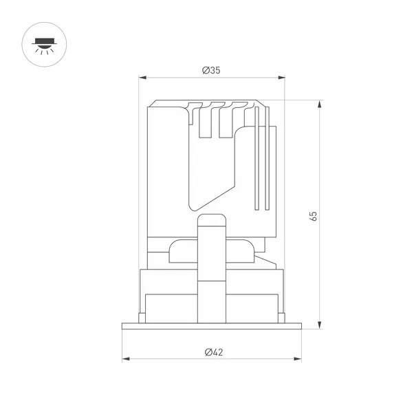 Встраиваемый светильник даунлайт. Мощность 3 Вт, св. поток 170 лм, 56 лм/Вт, теплый 3000 K, CRI>92, угол 36°, напряжение питания 230 В. Белый круглый корпус из алюминия, ,белый матовый отражатель, степень защиты IP20 . Размер: диаметр 42 мм, высота 65 мм. Монтаж встраиваемый, установочное отверстие: диаметр 35 мм. Драйвер, 30-40 В, 70 мА, пульсация <1%.