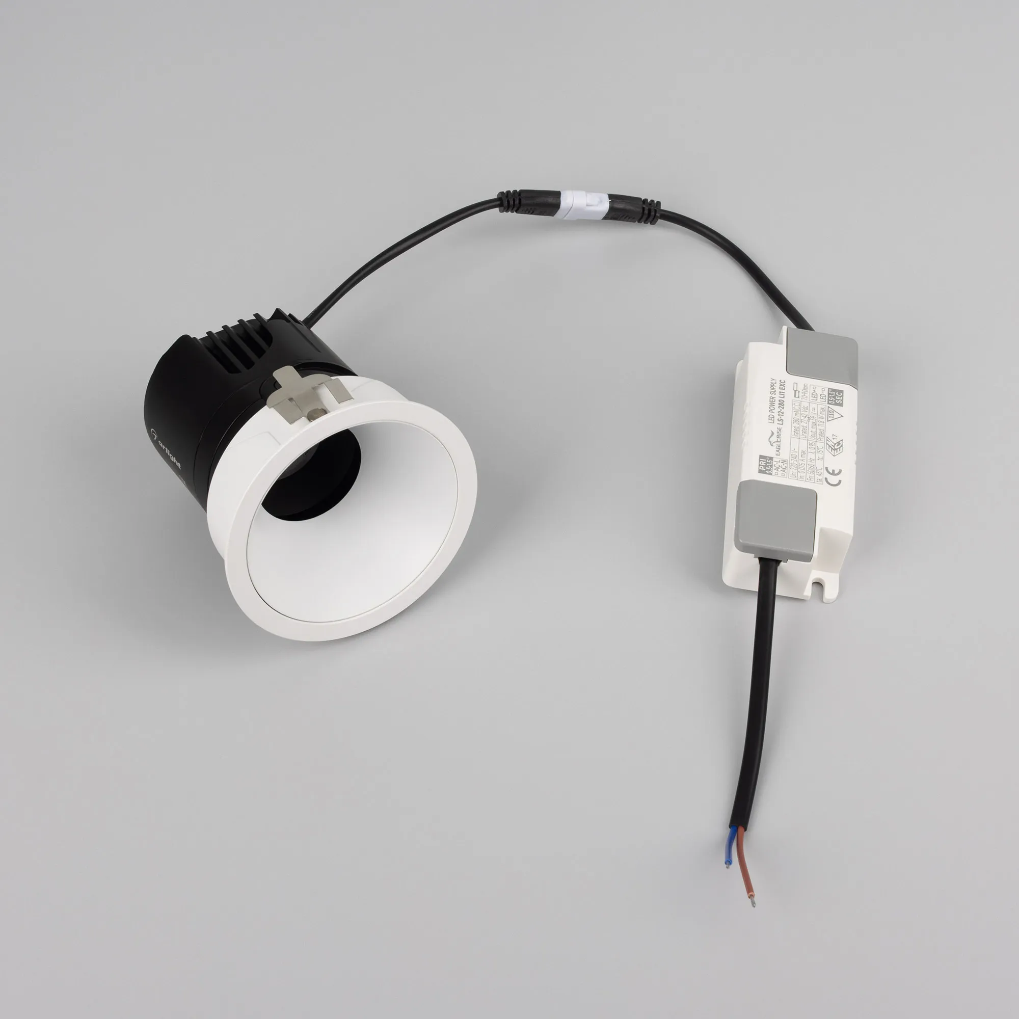 Встраиваемый светильник даунлайт. Мощность 12 Вт, св. поток 905 лм, 75 лм/Вт, теплый 3000 K, CRI>92, угол 55°, напряжение питания 230 В. Белый круглый корпус из алюминия, белый матовый отражатель, степень защиты IP20 . Размер: диаметр 82 мм, высота 86 мм. Монтаж встраиваемый, установочное отверстие: диаметр 75 мм. Драйвер 27-42 В, 280 мА, пульсация <0,5%.