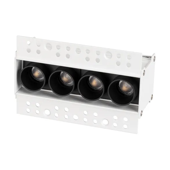 Встраиваемый безрамочный светильник MS-ORIENT-BUILT-TRIMLESS-TC-S38x127-10W Day4000 (WH-BK, 30 deg, 230V) под шпаклевку. Светильник мощностью 10 Вт, с дневным белым цветом свечения (4000 K) и максимально высоким индексом цветопередачи CRI>98 предназначен для основного, локального и декоративного освещения жилых, офисных помещений, учебных заведений, чистых помещений и рабочих зон в медицинских учреждениях. У светильника узкий угол излучения 30°, световой поток 750 лм и низкий коэффициент пульсаций <1%. Удобный встраиваемый монтаж в гипсокартонные потолки в установочное отверстие 130×50 мм. В комплекте поставляется драйвер, что позволяет безопасно и быстро подключать светильник напрямую к сети переменного тока 230 В.