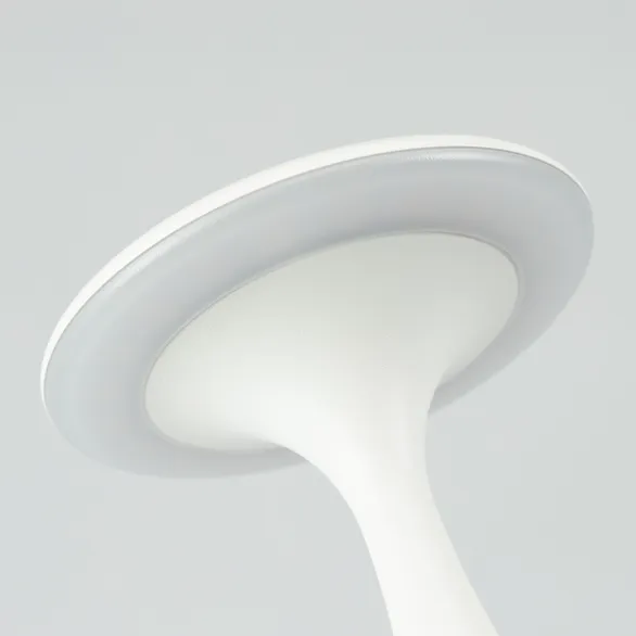 Настольный светильник со встроенным аккумулятором 1.5Вт, белый алюминиевый корпус. Цвет ТЕПЛЫЙ БЕЛЫЙ 2200-3000K, св.поток 110лм, CRI(Ra)>80, угол 123°. Размер Ф101x197мм. IP54. Зарядка от сети переменного тока AC220-240V. Тип встроенного аккумулятора 2600мАч Li-ion, напряжение батареи 3.7V.