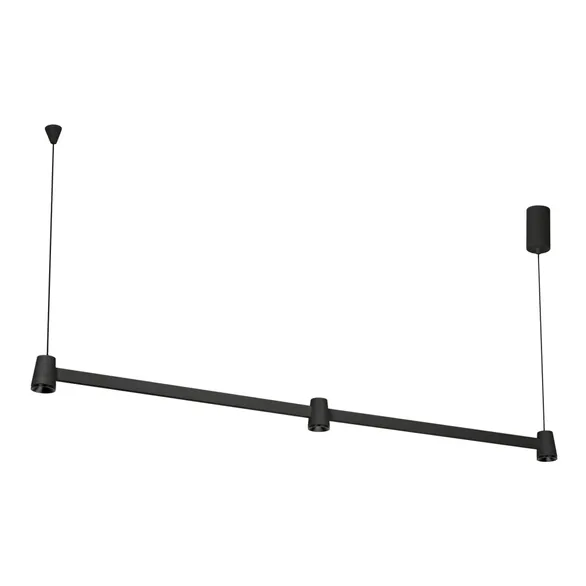 Подвесной светильник. Мощность 16 Вт, св. поток 1010 лм, 63 лм/Вт, теплый 3000 K, CRI>90, угол 35°, напряжение питания 230 В. Черный корпус из алюминия, степень защиты IP20. Размер: длина 1039 мм, ширина 40 мм, высота 55 мм, размер чаши: диаметр 50 мм, высота 90 мм. Монтаж подвесной, длина подвеса 1300 мм. Драйвер 27-38 В, 500 мА, пульсация <1%.