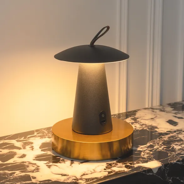Настольный светильник со встроенным аккумулятором 2Вт, чёрный алюминиевый корпус. Цвет ТЕПЛЫЙ БЕЛЫЙ 3000K, св.поток 260лм, CRI(Ra)>80, угол 127°. Размер Ф197x292мм. IP54. Зарядка от сети переменного тока AC220-240V. Тип встроенного аккумулятора 4400мАч Li-ion, напряжение батареи 3.7V.