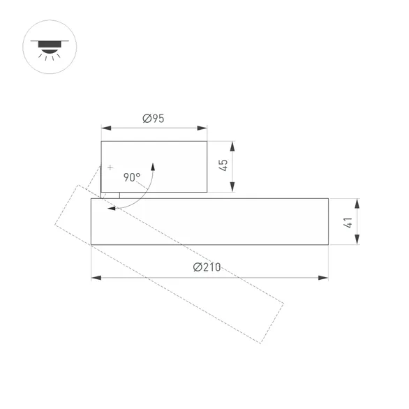 Поставка под заказ от 50 шт Накладной откидной светильник 20Вт, черный круглый корпус. Цвет ТЕПЛЫЙ 3000K, св.поток 1600лм, CRI(Ra)>90, угол 110°. Размер светильника Ф210x41мм, размер чаши Ф95x45мм. Питание AC220-240V, 20Вт, драйвер встроенный (500mA 27-40V). Поворачивается вокруг своей оси на 350° и отклоняется на 90°.Пульсация <0,3%.