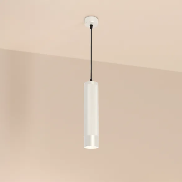 Подвесной светильник. Мощность 13 Вт, св. поток 732 лм, 57 лм/Вт, теплый 3000 K, CRI>90, угол 50°, напряжение питания 230 В. Белый круглый корпус из алюминия, рефлектор PC, степень защиты IP20. Размер: диаметр 70 мм, высота 300 мм, длина подвеса 1500 мм, размер чаши: диаметр 65 мм, высота 30 мм. Монтаж подвесной. Драйвер 24-42 В, 300 мА, пульсация <1%.