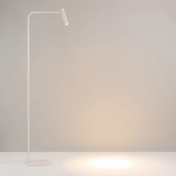Декоративный напольный светильник. Мощность 3 Вт, св. поток 180 лм, 60 лм/Вт, теплый 3000К, CRI>90, угол 20°, напряжение питания 230 В. Белый корпус из алюминия (основание, ножка, светоизлучатель в форме шара), степень защиты IP20. Размер основания Ø250×12 мм, размер ножки Ø16×1440х250 мм, размер светоизлучателя Ø35×150 мм. Длина провода 193 мм, питание от сети 220-240V. Пульсация <1%.