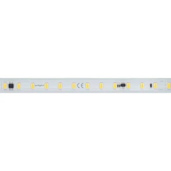 Герметичная лента ARL серии C72, IP65(PV-трубка ПВХ экструзия) оболочка ленты имеет защиту от УФ излучения, что позволяет использовать ее на улице. Лента подключается непосредственно к сети переменного тока 230 В и не требует использования источников питания. Использование интегральных стабилизаторов тока позволяет подключать ленту длиной до 50м, обеспечивая при этом равномерную яркость свечения по всей длине ленты. При подключении нескольких лент, подавать питание на каждые 50м отдельным кабелем. Запрещается последовательное подключение лент более 50м. Лента применяется для подсветки потолочных ниш, декоративной подсветки, создания контуров рекламных объектов. Может использоваться в помещениях и на улице. На лентах установлены микросхемы с функцией снижения тока для защиты ленты от перегрева, что обеспечивает надежную работу лент в различных условиях. Диммирование осуществляется диммерами TRIAC в диапазоне 15%-90%. Крепление с помощью скоб, аксессуары для монтажа и подключения поставляются отдельно.