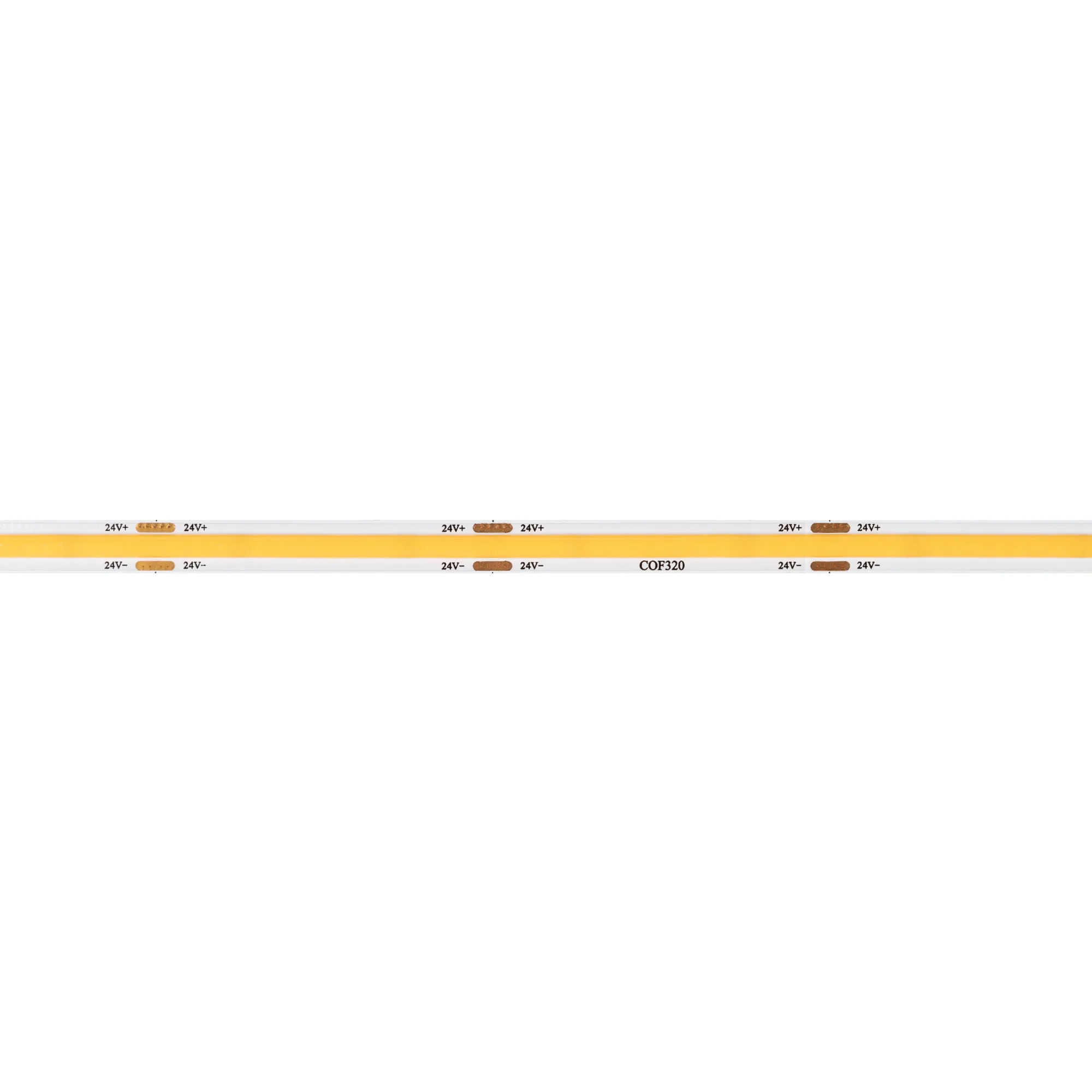 Светодиодная лента сплошного свечения COB серии X320 шириной 8 мм, мощностью 8 Вт/м. Напряжение питания 24 В. Светодиоды CSP, 320 шт/м, дневного цвета свечения (4000K). Высокий индекс цветопередачи CRI>90 обеспечивает точное восприятие цветовых оттенков при освещении любых жилых, офисных или производственных помещений. Минимальный отрезок 50 мм. В ленте используется технология ReelToReel, данная технология обеспечивает производство ленты без пайки и повышает ее механическую прочность. Эффект сплошной линии света создается без применения рассеивающих экранов. Используется для декоративной подсветки рекламных конструкций и витрин. Светодиодная лента сплошного свечения COB серии X320. Светодиоды CSP, 320 шт/м, белая плата шириной 8 мм, скотч 3M. Цвет ДНЕВНОЙ 4000K, индекс цветопередачи CRI>90, угол 175°. Питание 24 В, мощность 8 Вт/м (40 Вт на 5 м). Размеры 5000х8х2 мм. Мин. отрезок 50 мм. Цена за 1 м.