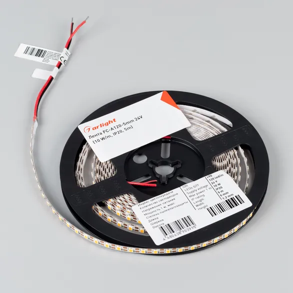Светодиодная лента FC серии A120, шириной 5 мм, мощностью 10 Вт/м, с малым шагом резки. Напряжение питания 24 В. Светодиоды SMD 2835, 120 шт/м, дневного цвета свечения (5000K). Высокий индекс цветопередачи CRI>90 позволяет точно воспринимать цвета при освещении любых интерьеров жилых и коммерческих помещений. Малый шаг резки 8.33 мм позволяет получить отрезок оптимальной длины. Используется для декоративной подсветки рекламных конструкций и витрин. Обязательна установка на профиль.