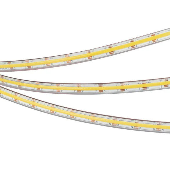Светодиодная герметичная лента сплошного свечения COB серии X640 с изменяемым цветом свечения, IP67 (PS - силиконовая экструзия). Светодиоды CSP, 640 шт/м, белая плата шириной 12 мм, скотч 3M. Цвет MIX БЕЛЫЙ 6000K + ТЕПЛЫЙ 2700K, индекс цветопередачи CRI>90, угол 120°. Питание 24 В, мощность 23 Вт/м (115 Вт на 5 м). Размеры 5000x12x5 мм. Мин. отрезок 25 мм, 16 светодиодов. Цена за 1 м. Обязательна установка на профиль.
