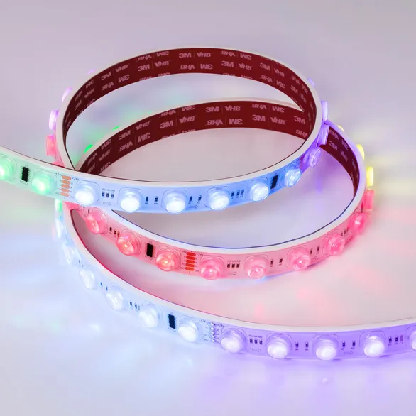 Светодиодная герметичная лента DMX Wall Washer серии S36 с микросхемой SM18522PS, IP67 (PS). Светодиоды SMD 3030, 36 шт/м, 6 pixels на 1м (30 pixels на 5 м), 1 pixel = 6 светодиодов, белая плата шириной 20 мм, скотч 3М. Цвет RGB, направленная линза с углом 30°. Питание 24 В, мощность 20 Вт/м (100 Вт на 5 м). Размеры 5000х23x12 мм. Мин. отрезок 167 мм, 6 светодиодов. Цена за 1 м.