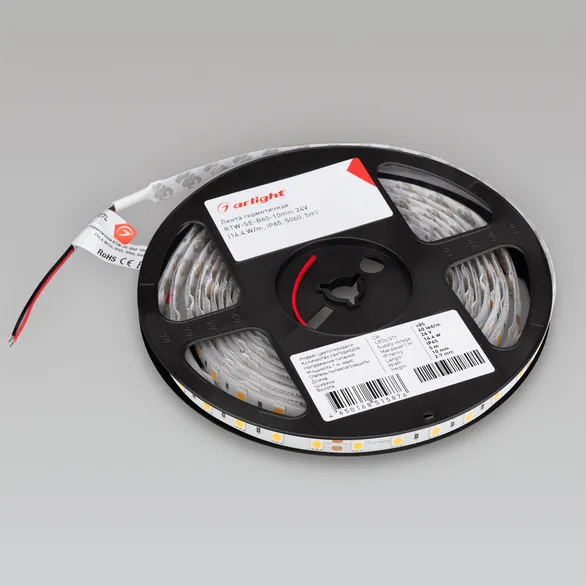 Светодиодная герметичная лента RTW серии B60 шириной 10 мм, мощностью 14.4 Вт/м, степень защиты IP65, силиконовый верхний слой. Напряжение питания 24 В. Светодиоды SMD 5060, 60 шт/м, белого цвета свечения (6000K). Минимальный отрезок 100 мм (6 светодиодов). Применяется для декоративной подсветки любых жилых, коммерческих помещений, декоративной подсветки интерьеров, потолочных ниш, рабочих зон кухни, помещений с повышенной влажностью, рекламных конструкций и витрин.