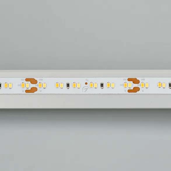 Биполярная узкая лента LUX шириной 8 мм с изменяемым цветом свечения: белым (6000 К) и теплым белым (2700 К). Светодиоды SMD 2216 (240 шт/м) с высоким индексом цветопередачи (CRI>90). Мощность 9.6 Вт/м, напряжение питания 24 В. Сниженное энергопотребление. Минимальный отрезок 50 мм (12 светодиодов). Рекомендована для освещения детских комнат, выставочных площадей, торговых залов и других помещений, где важно передать цветовые нюансы. Подходит для основного освещения и декоративной подсветки.