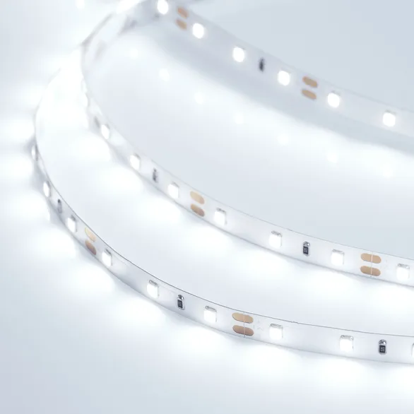 Открытая светодиодная лента шириной 8 мм и мощностью 7.2 Вт/м с индексом цветопередачи CRI>85. Напряжение питания 12 В. Светодиоды SMD 2835 (60 шт/м) холодного белого цвета свечения (7700–9600 К). Минимальный отрезок 50 мм (3 светодиода). Для создания качественного основного освещения и декоративной подсветки интерьеров, рекламных конструкций и витрин. Поставка под заказ от 600 м.