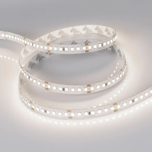 Гибкая лента LUX, светодиоды smd 2835, 168 шт/м (840шт на 5м), белая плата 10 мм, скотч 3М. Цвет ДНЕВНОЙ 3800-4200K. Питание 24V, мощность 17 Вт/м (85 Вт на 5м), угол 120°, цветопередача CRI>85. Размеры 5000х10x1.5мм. Мин.отрезок 41.67мм, 7 светодиодов. Цена за 1м.