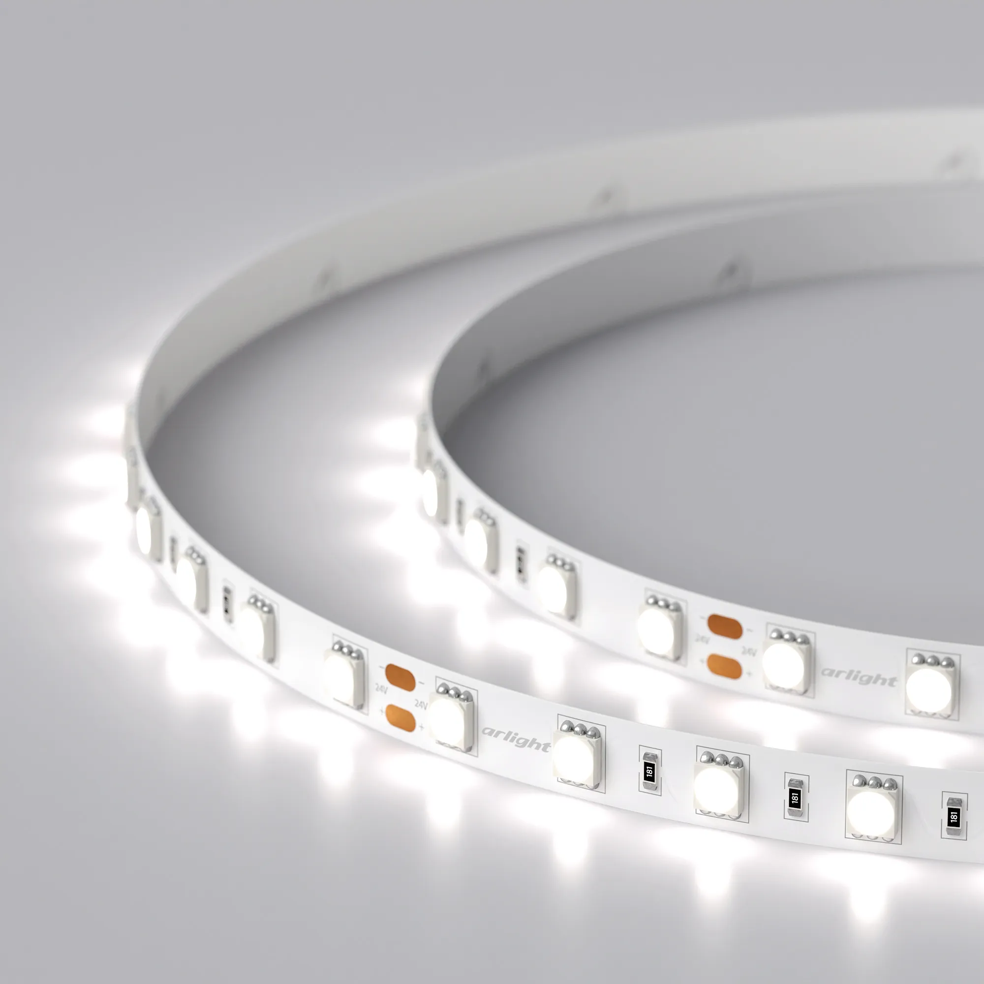 Гибкая лента LUX, светодиоды smd 5060, 60шт/м (300шт на 5м), белая плата 10мм, скотч 3М. Цвет БЕЛЫЙ 5800-6500K. Питание 24V, мощность 14.4 Вт/м (72 Вт на 5м), угол 120°, цветопередача CRI>85. Размеры 5000х10x2.2мм. Мин.отрезок 100мм, 6 светодиодов. Цена за 1м.
