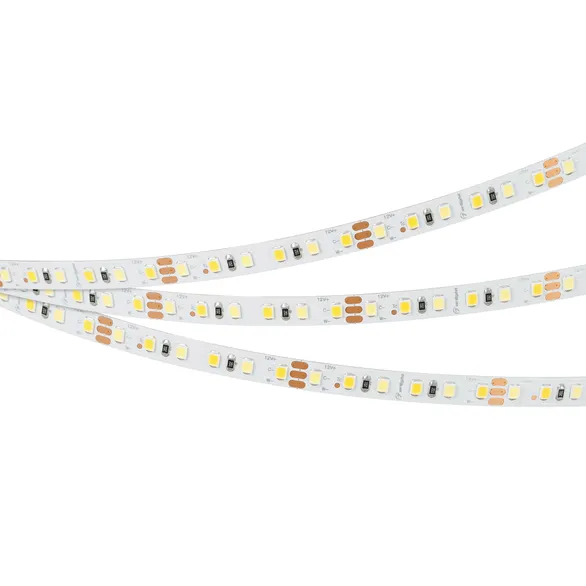 Светодиодная лента RT серии A120 шириной 8 мм, мощностью 9.6 Вт/м, с изменяемым цветом белого свечения в широком диапазоне (MIX) от теплого (2700K) до белого (6000K). Напряжение питания 12 В. Светодиоды SMD 2835 (120 шт/м). Индекс цветопередачи CRI>85. Минимальный отрезок 50 мм (6 светодиодов). Двухканальная лента с тремя проводами для подключения, управляется любым MIX-контроллером. Применяется для создания биодинамического освещения, декоративной подсветки элементов интерьера, ниш, рекламных конструкций, витрин, рабочих зон, зон отдыха, мебели.