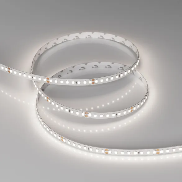 Высокоэффективная светодиодная лента RT серии A160. Светодиоды SMD 2835, 160 шт/м, дневного цвета свечения (5000K). Напряжение питания 24 В, мощность 12 Вт/м, ширина 8 мм. Применяется для создания декоративных ярких линий интерьеров, потолочных ниш. Индекс цветопередачи CRI>85, высокая световая эффективность (150 лм/Вт) позволяет применять ленту для энергоэффективного освещения любых жилых и коммерческих помещений. Применяется для создания светильников на основе алюминиевого профиля. Для обеспечения теплоотвода обязательна установка на алюминиевый профиль.
