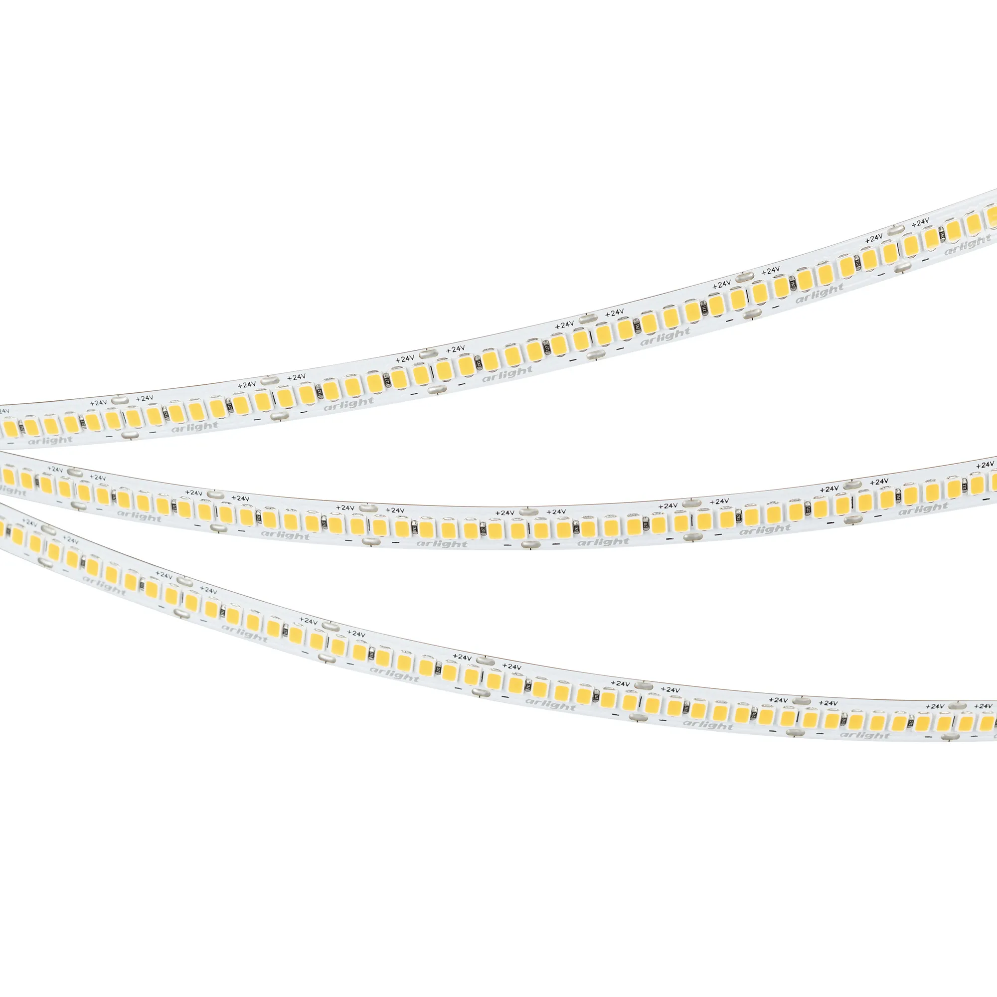 Светодиодная лента RT серии A280. Светодиоды SMD 2835, 280 шт/м, белая плата шириной 8 мм, скотч 3M. Цвет ТЕПЛЫЙ 3500K, индекс цветопередачи CRI>90, угол 120°. Питание 24 В, мощность 10 Вт/м (50 Вт на 5 м). Размеры 5000x8x1.3мм. Мин. отрезок 25 мм, 7 светодиодов. Цена за 1 м.