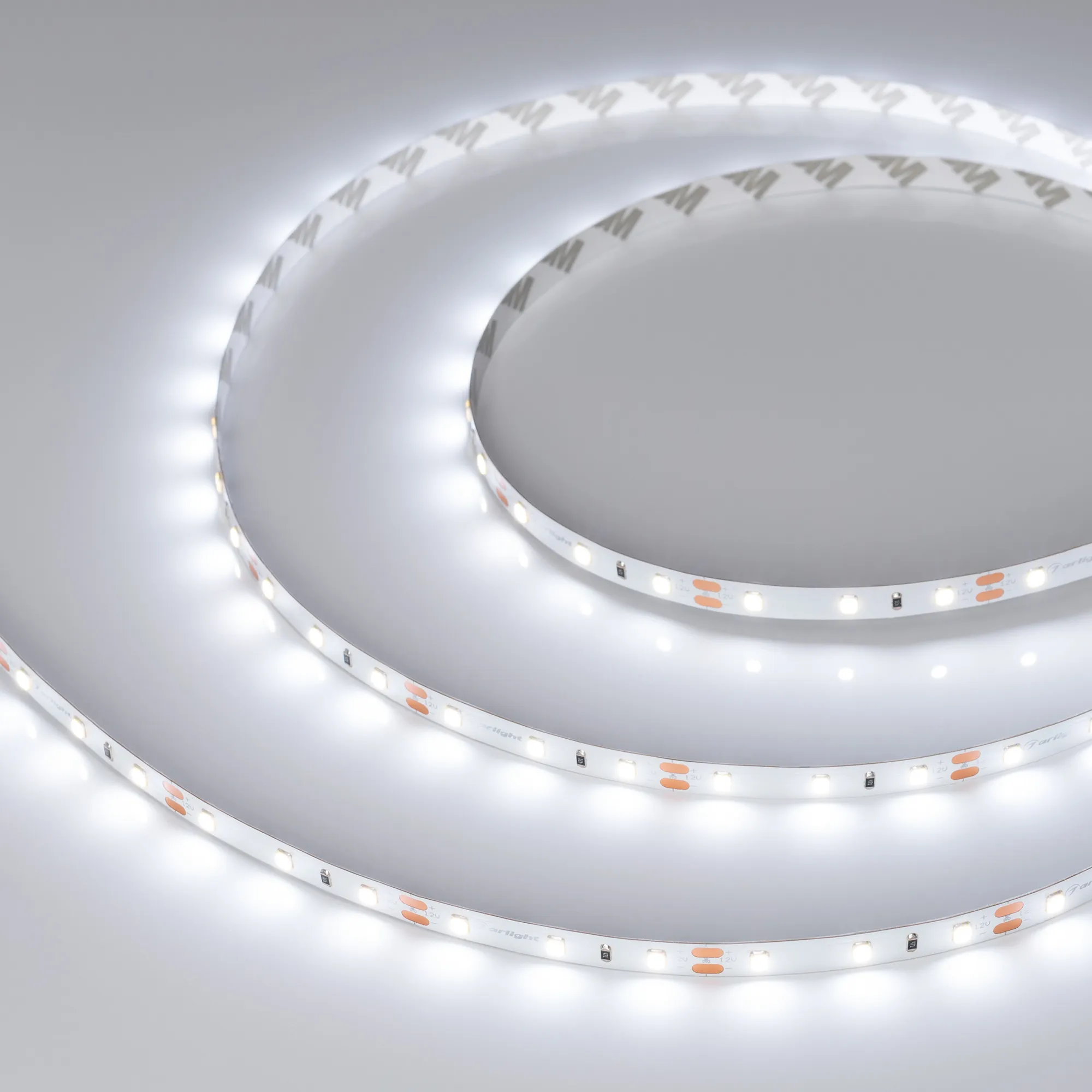 Универсальная светодиодная лента RT серии A60 на монтажной бобине 50 м, шириной 8 мм, мощностью 2 Вт/м. Напряжение питания 24 В. Светодиоды SMD 2835, 60 шт/м, белого цвета свечения (4000K). Индекс цветопередачи CRI>85. Минимальный отрезок 50 мм (3 светодиода). Универсальное применение для организации декоративной подсветки любых жилых и коммерческих помещений, подсветки интерьеров, потолочных ниш, лестниц, ступеней, полок, натяжных потолков, витражей. Создание световой рекламы: подсветка лайтбоксов, вывесок, букв, витрин. Разрезать перед подключением, максимальная длина подключения - 5 м. Поставка под заказ от 650 м.