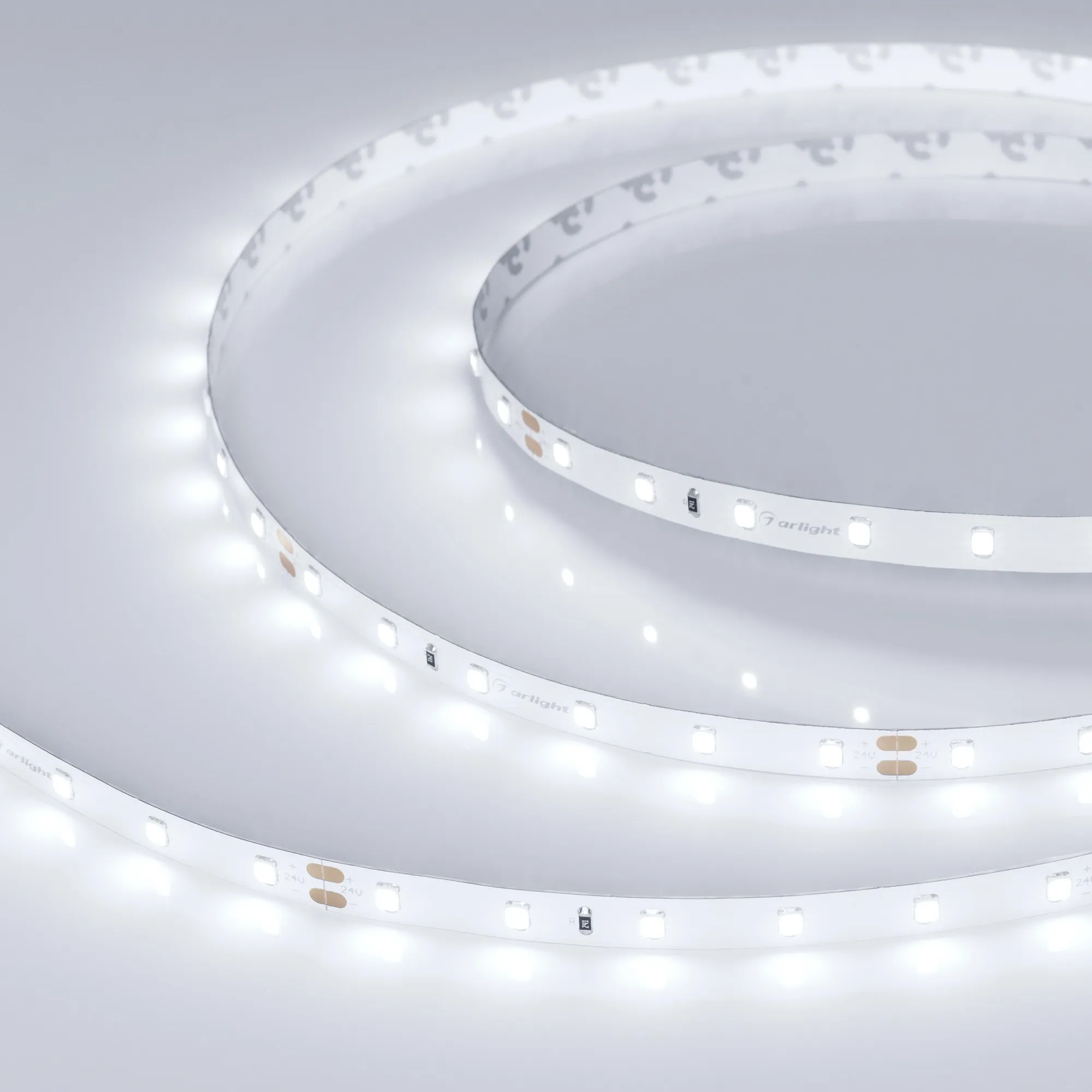 Светодиодная лента RT серии A60 с высоким индексом цветопередачи. Светодиоды SMD 2835, 60 шт/м, белая плата шириной 8 мм, скотч 3М. Цвет ДНЕВНОЙ 5000K, индекс цветопередачи CRI 95...98, угол 120°. Питание 24 В, мощность 4.8 Вт/м (24 Вт на 5 м). Размеры 5000х8х1.5 мм. Мин. отрезок 100 мм, 6 светодиодов. Цена за 1 м.