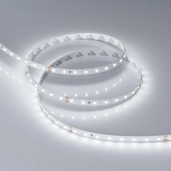 Светодиодная высокоэффективная лента RT серии A80 (монтажная бобина 50 м). Светодиоды SMD 2835, 80 шт/м, белая плата шириной 8 мм, скотч 3M. Цвет БЕЛЫЙ 6000K, высокая световая эффективность 150 лм/Вт, индекс цветопередачи CRI>85, угол 120°. Питание 24 В, мощность 6 Вт/м (300 Вт на 50 м). Размеры 50000x8x1.5 мм. Мин. отрезок 100 мм, 8 светодиодов. Цена за 1 м. Разрезать перед подключением. Макс. длина подключения 5 м.