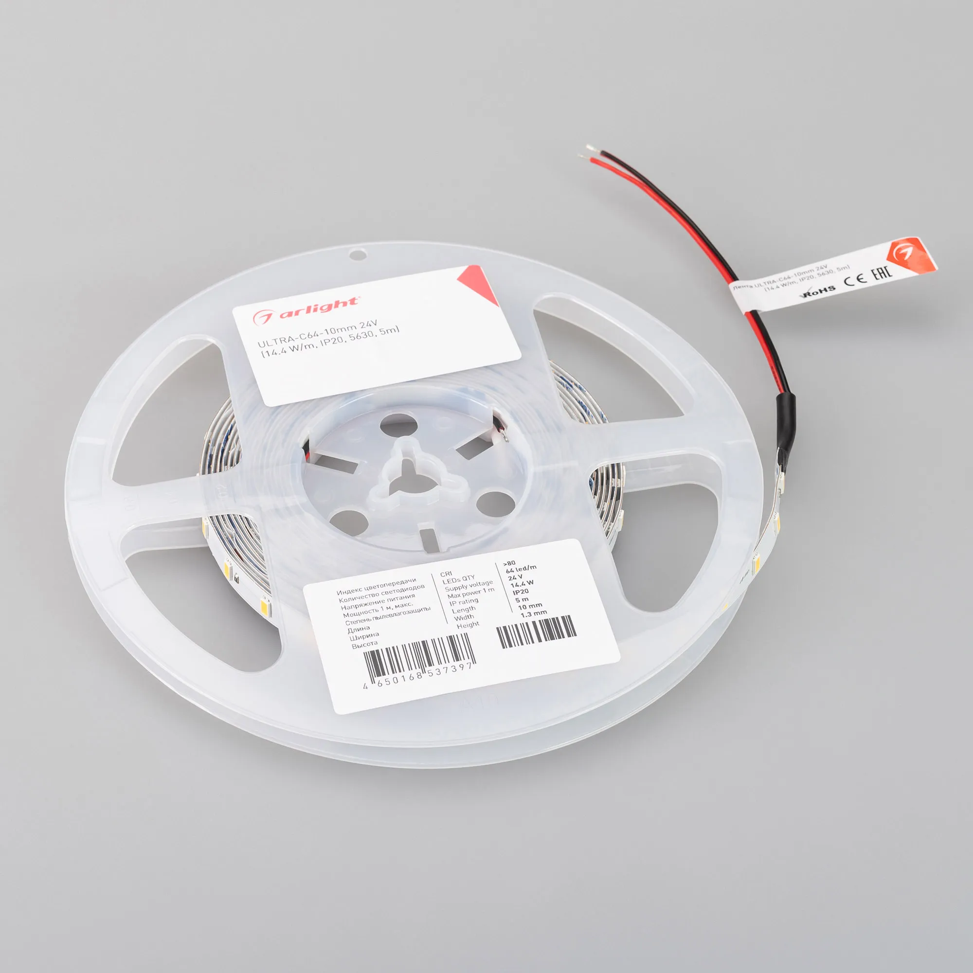 Светодиодная лента ULTRA серии C64 с высокой световой эффективностью 160 лм/Вт, шириной 10 мм, мощностью 14.4 Вт/м, теплого цвета свечения (2700K). Напряжение питания 24 В. Светодиоды SMD 5630, 64 шт/м. Индекс цветопередачи CRI>80. Предназначена для применения в основном освещении жилых и офисных помещений, создания светильников на основе алюминиевого профиля, подсветка рекламных конструкций и витрин, декоративная подсветка потолков, ниш, колонн. Минимальный отрезок 125 мм (8 светодиодов). Обязательна установка на алюминиевый профиль.