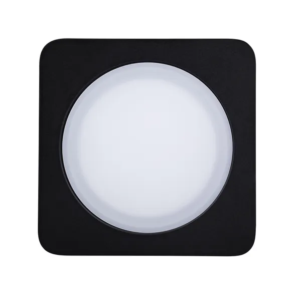 Квадратный светильник с контурным свечением. Корпус IP44 черный + вставка поликарбонат PC. Цвет ДНЕВНОЙ 4000К, св.поток 325 лм, угол 120°+180°. Питание 110-240VAC (драйвер в к-те 300mA 11-25V), мощность 5Вт. Размеры 80х80х40 мм, установка в отв.65х65 мм, высота мин.40 мм.