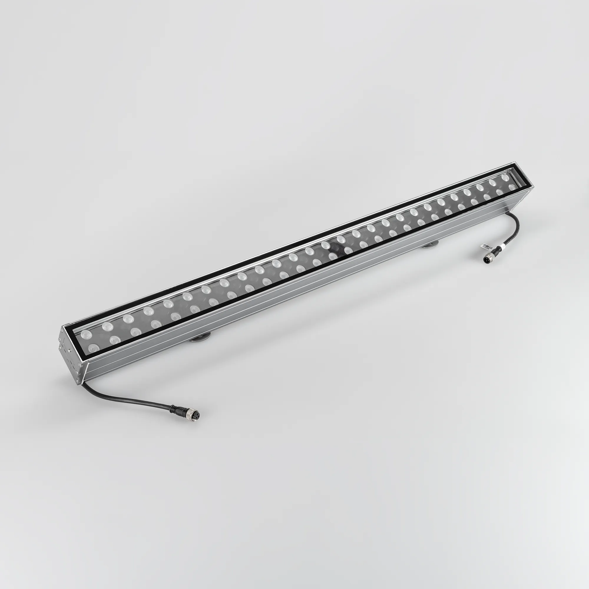 Поставка под заказ от 30 шт. Линейный светодиодный прожектор. Мощность 54W, напряжение питания AC 230V. Светодиоды OSRAM 54 штуки. Цвет светодиодов БЕЛЫЙ (6000K), световой поток 80Lm/Watt, угол рассеивания 30°. Корпус: алюминиевый сплав и армированное стекло. Цвет корпуса серый, степень влагозащиты IP65. Габариты 1000x128x70мм. Гарантия 3 года с даты продажи.